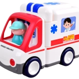 Caractéristiques principales du produit: - Conduite autonome : Le véhicule peut rouler tout seul et change de direction lorsqu’il rencontre un obstacle. - Effets sonores : Sons de démarrage du moteur, sirène d’ambulance, klaxon, musique joyeuse et bruit de freinage. Les effets lumineux comprennent des feux clignotants. - Interrupteur fonctionnel : Un sélecteur sous le véhicule permet de choisir entre mode statique et mode mobile.