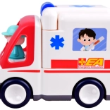 Ambulance interactive est le cadeau idéal pour tous les petits médecins et sauveteurs. Cette ambulance richement équipée est toujours prête à intervenir là où l’aide est nécessaire.