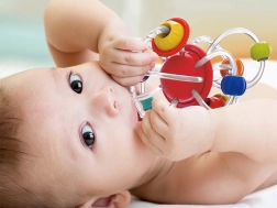 L’anneau de dentition offre différentes textures et couleurs qui stimulent les sens de votre enfant.