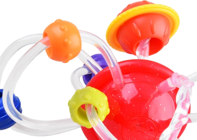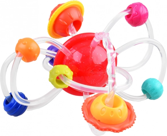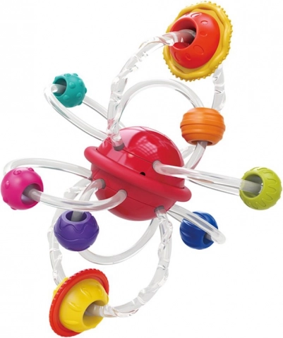 Découvrez l’anneau de dentition en silicone 2-en-1 avec planètes et anneaux, qui apporte un soulagement lors de la poussée dentaire tout en stimulant les sens. Ce jouet est doté d’une planète rouge rotative d’où partent des tubes en silicone flexibles avec des anneaux multicolores contenant diverses aspérités qui aident à masser les gencives sensibles de votre enfant.