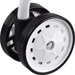 Les roues doubles pivotantes assurent stabilité et glisse douce sur différentes surfaces pour un confort de conduite optimal.