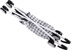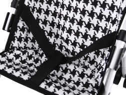 Le motif pied-de-poule noir et blanc apporte une touche d’élégance à la poussette, que les enfants adopteront immédiatement.