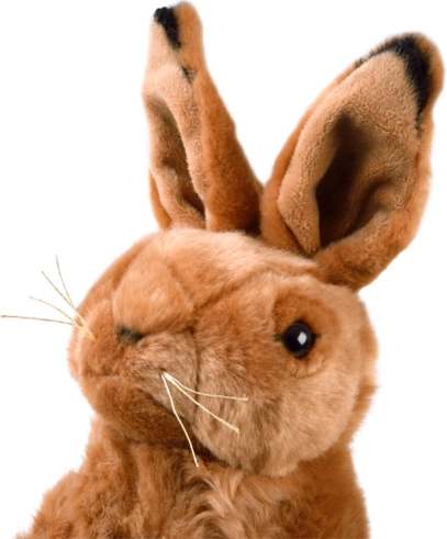 Le lapin en peluche capture les détails d’un vrai lièvre, y compris les longues oreilles et les jolies moustaches.