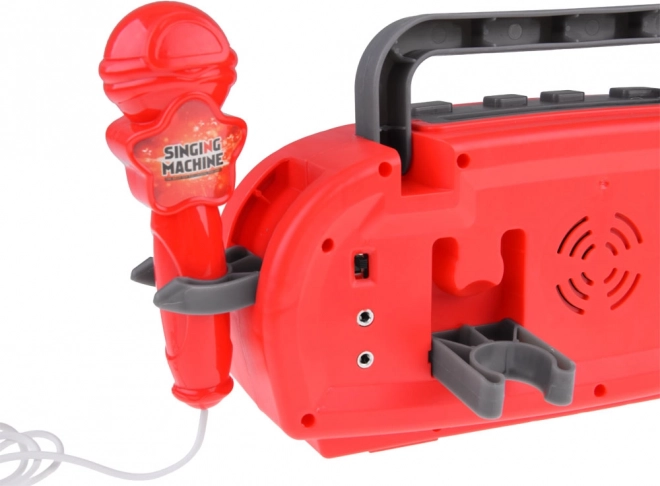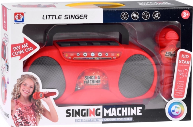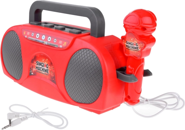 Ce karaoké pour enfants dans une élégante couleur rouge offre beaucoup de divertissement – du chant au micro à l’écoute des chansons préférées depuis un mobile ou un lecteur MP3. Une fois le micro connecté, l’appareil amplifie la voix, pour que les petits chanteurs brillent comme sur scène. Des effets lumineux intégrés donnent la bonne ambiance à chaque performance.