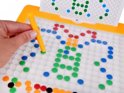 La manipulation des chevilles et du stylet magnétique entraîne la prise, la coordination et la patience. Outil idéal pour les enfants d’âge préscolaire et les élèves du primaire.