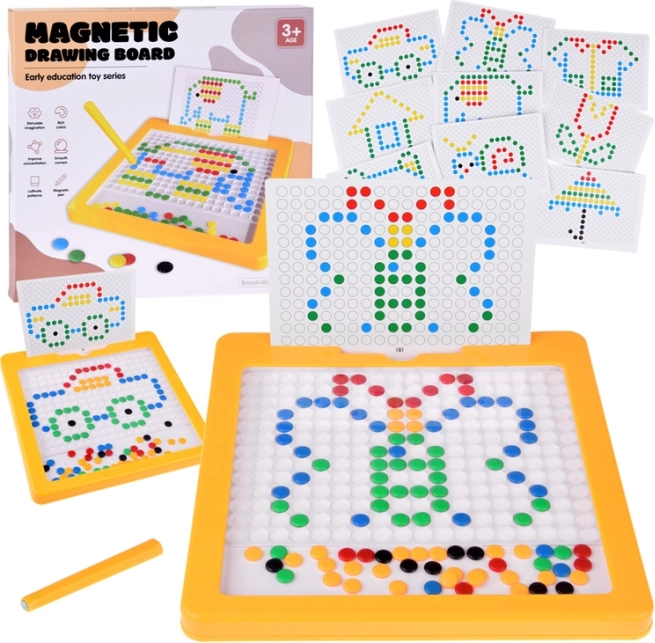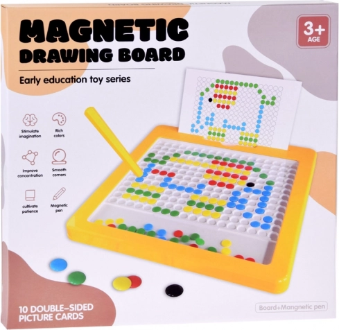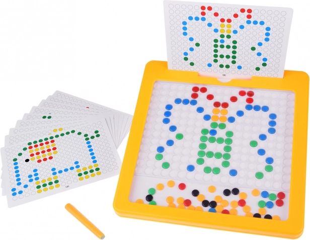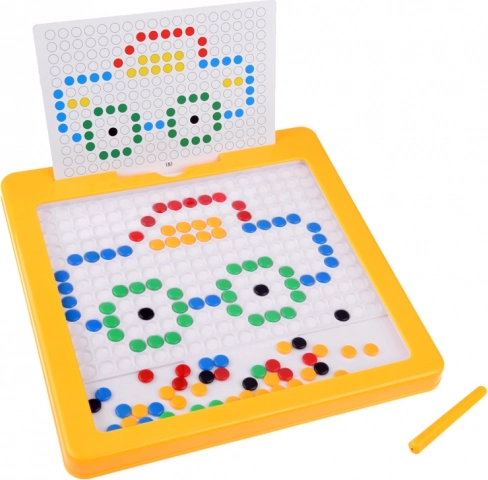 La mosaïque magnétique éducative YOKOMISIADA combine jeu et apprentissage. Les enfants insèrent des chevilles colorées dans la grille en suivant les modèles (voiture, papillon, fleur, etc.) ou créent leurs propres images. La surface magnétique facilite la manipulation et maintient les éléments en place, pour un jeu fluide et sans désordre inutile.