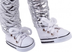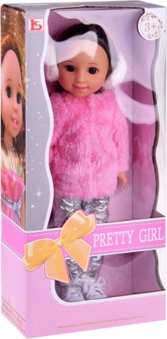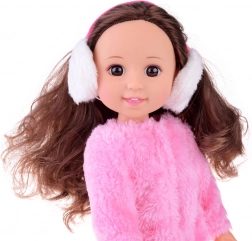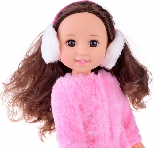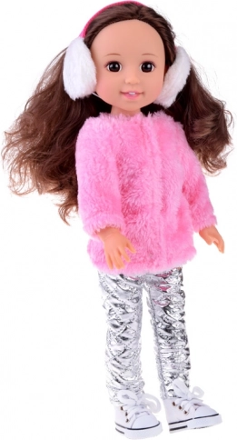 La poupée est habillée d’une tenue d’hiver chaleureuse : un doux manteau rose en fourrure, un pantalon argenté stylé et des baskets blanches à lacets complétés par des cache-oreilles d’hiver pour un look parfait. Un excellent choix pour développer la motricité fine, l’imagination et les compétences sociales.