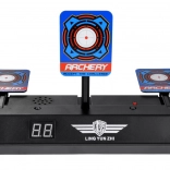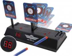 Grâce à sa compatibilité avec les jouets à fléchettes en mousse (p. ex. Nerf), la cible plaira autant aux enfants qu’aux adultes. Une base en plastique solide assure la stabilité sur une table ou au sol, et des commandes simples permettent de démarrer la partie rapidement.