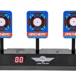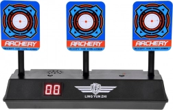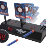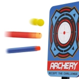 La disposition à trois points permet d’ajuster la difficulté et d’entraîner aussi bien la précision que le tir rapide avec des fléchettes en mousse.