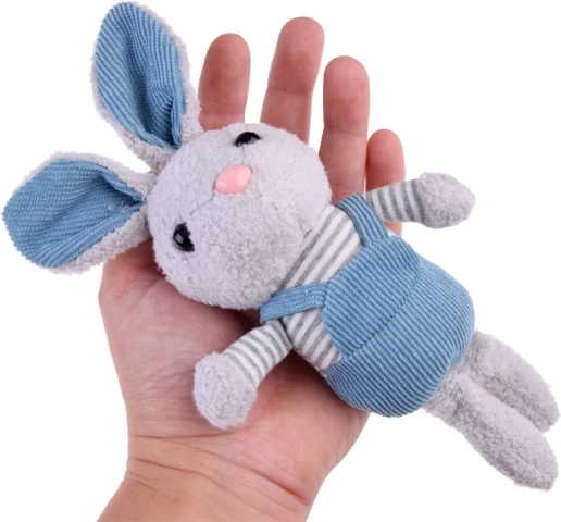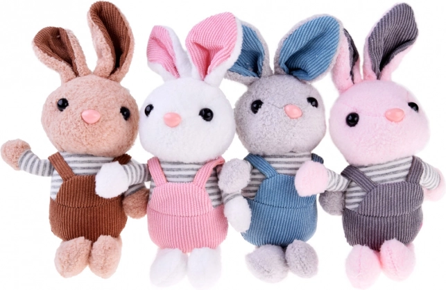 Parfait comme pendentif pour sac à dos, décoration de clés ou petit doudou de voyage. Le t-shirt rayé et la salopette déclinés en différentes couleurs confèrent au lapin un style distinctif qui plaira autant aux enfants qu’aux adultes.