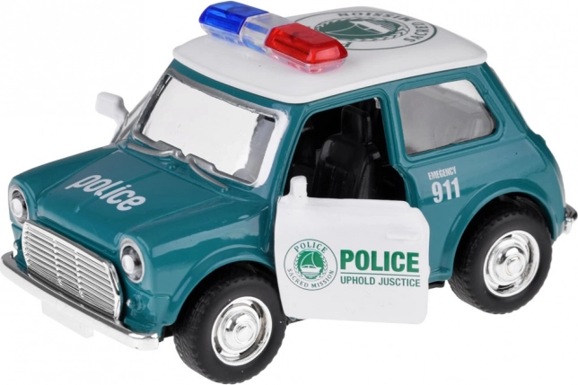 Cette mini voiture de police au design classique offre des détails réalistes, notamment des gyrophare rouges et bleus et un marquage POLICE bien visible. La carrosserie en métal et les roues en caoutchouc augmentent la résistance et l’adhérence, ce qui en fait un jouet idéal pour jouer au quotidien à la maison comme en déplacement.