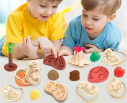 Les moules et les emporte-pièces permettent aux enfants d’imprimer facilement des squelettes et des empreintes de dinosaures dans la pâte à modeler. Une manière ludique de découvrir la préhistoire et de développer l’imagination.