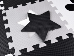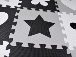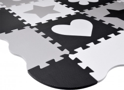 Un tapis pour enfants en puzzle de mousse, stylé et sécurisé, dans des nuances de gris, noir et blanc, crée un espace de jeu doux et hygiénique. L’ensemble comprend 16 grandes pièces avec formes amovibles, une surface antidérapante et une isolation thermique. Grâce à la possibilité de les assembler aussi en hauteur, vous pouvez créer un petit enclos/espace délimité pour des jouets ou des balles.
