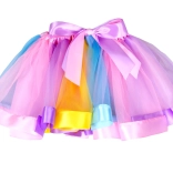 Vous rêvez de la jupe parfaite pour de petites danseuses ? Notre tutu multicolore avec dégradé arc-en-ciel et nœud rose est la pièce idéale.