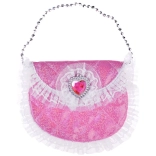Ce petit sac pour enfant, orné de sequins et d’un liseré en dentelle, est l’accessoire parfait pour les petites fées et leurs aventures ludiques.