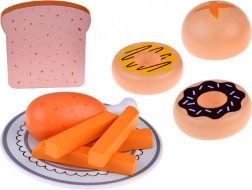 Le kit comprend une assiette en porcelaine, des jouets colorés comme des biscuits sucrés, des frites de patate douce, une cuisse de poulet et un toast savoureux. Ces jouets encouragent le jeu imaginatif et approfondissent l'intérêt des enfants pour la cuisine et l'art culinaire.