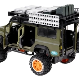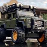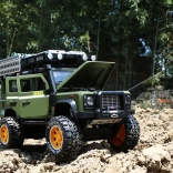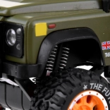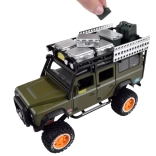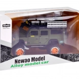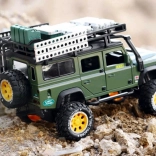 Découvrez une voiture tout terrain en métal bien travaillée pour chaque petit aventurier. La voiture est de couleur verte élégante avec des détails soigneusement travaillés comme le porte-bagages de toit avec un bidon et des boîtes.