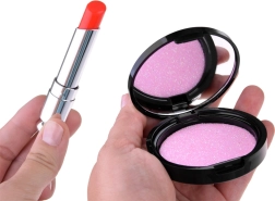 Le coffret comprend différents types de maquillage comme des fards à paupières, des rouges à lèvres et des blushs, non toxiques et adaptés à la peau sensible des enfants.