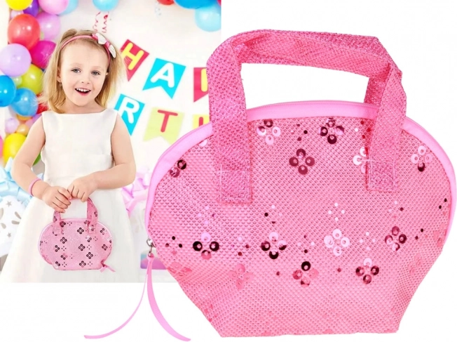 Tous les produits sont rangés dans une trousse de maquillage rose, pratique pour le stockage et esthétiquement plaisante pour les enfants.