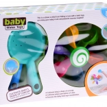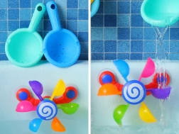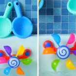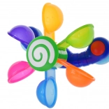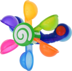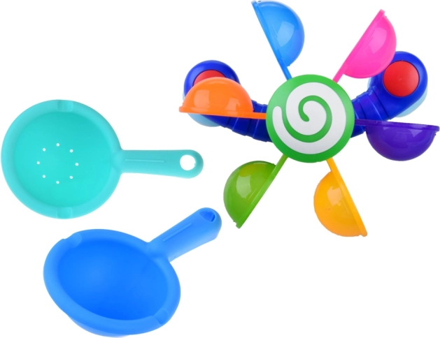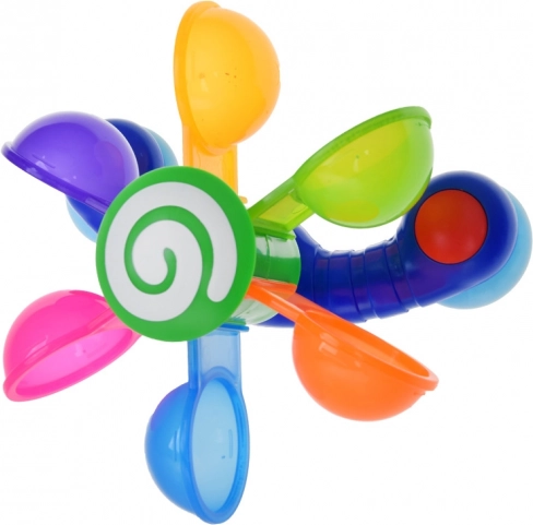 Permettez à votre enfant de s'amuser avec des cuillères colorées et mobiles qui tournent lorsqu'on verse de l'eau dessus, aidant ainsi l'enfant à comprendre les concepts de mouvement et de rétroaction. Ce jouet soutient le développement moteur, les fonctions cognitives et les capacités de coordination. Pendant le jeu, l'enfant peut apprendre les couleurs, compter et imaginer différentes histoires. Ce jouet pour le bain est facilement déplaçable et démontable, permettant son positionnement sur les côtés de la baignoire, de la douche ou de la piscine. L'arc-en-ciel coloré des cuillères commence à tourner lorsque l'eau se diffuse, stimulant l'ouïe de l'enfant.