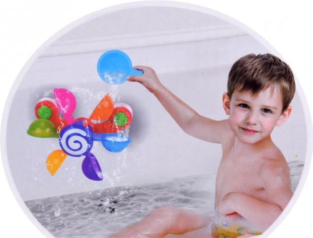 Moulin à eau coloré et tourbillonnant conçu pour s'amuser dans l'eau pendant le bain. Grâce aux ventouses, il se fixe facilement sur les surfaces lisses dans la salle de bain.