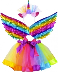 Découvrez la magie avec ce costume fantastique de licorne qui permet à chaque enfant d'entrer dans un royaume plein de merveilles. Cet ensemble comprend une belle jupe colorée comme un arc-en-ciel, des ailes qui éblouiront tout le monde par leur éclat, et un serre-tête unique avec une corne de licorne.