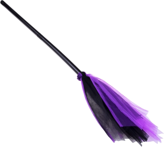 Balai léger avec poignée en plastique et finition noir‑violet, idéal comme accessoire pour les costumes de carnaval et d’Halloween.