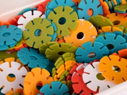 Le jeu contient 506 pièces dans 6 couleurs différentes : blanc, jaune, orange, rouge, vert, bleu. Les briques sont rangées dans une boîte en plastique avec couvercle muni d'une poignée pour un transport aisé. Après avoir joué, l'enfant peut facilement ranger le jeu.