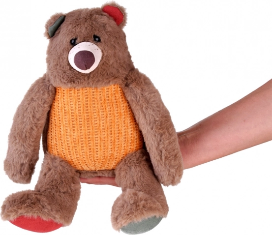 L'adorable ours en peluche Théodore est le compagnon parfait pour les petits et grands enfants. Cet ours brun doux est parfait pour les étreintes et apporte du confort et de la sécurité. Ses couleurs vives - pull tricoté orange, oreilles vertes et rouges et pattes, donnent un aspect joyeux au jouet.