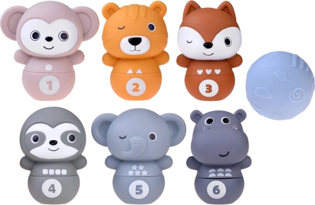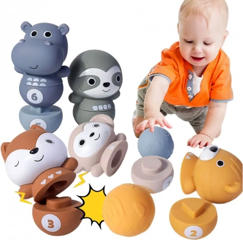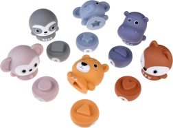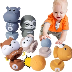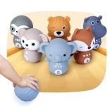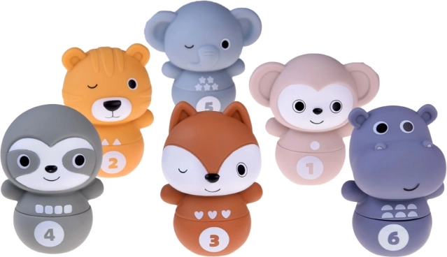 Disposez les quilles côte à côte et les enfants peuvent faire tomber les joyeux animaux à l’aide de la balle. Une fois renversés, ils se séparent en deux moitiés, offrant une autre variante de jeu. Les enfants entraînent ainsi leur motricité et leur logique en reconstituant les animaux selon les formes et les chiffres.