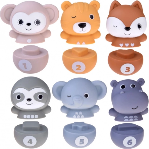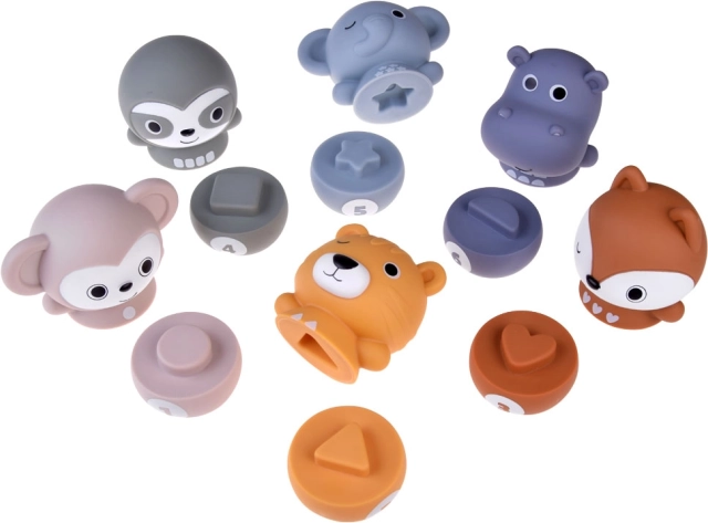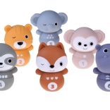 Choisissez parmi six figurines animales différentes : un petit singe, un éléphant, un hippopotame, un tigre, un paresseux et un écureuil.