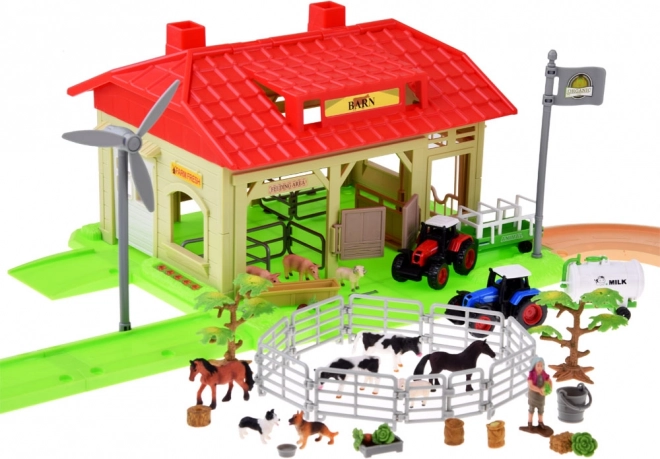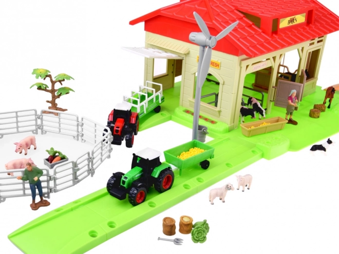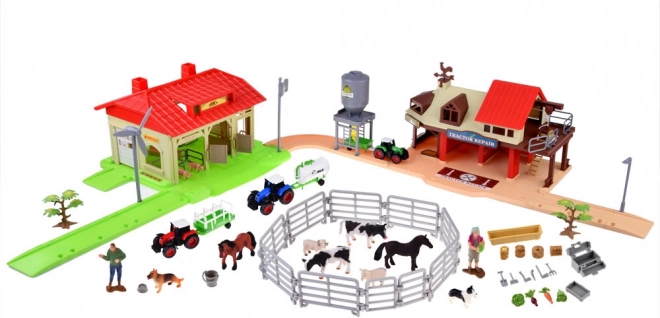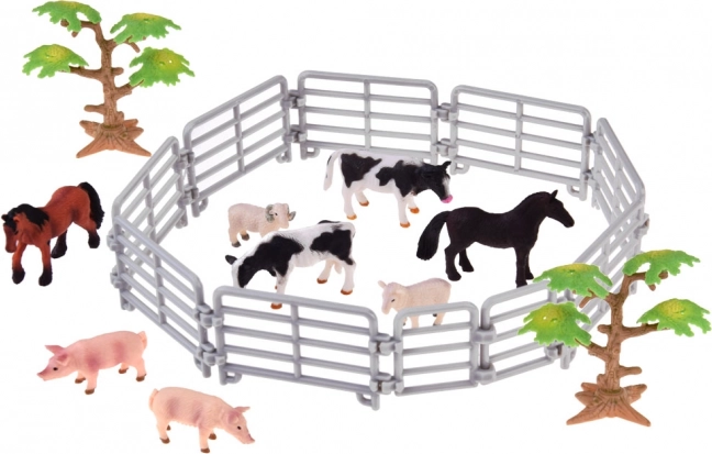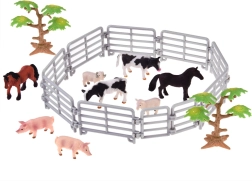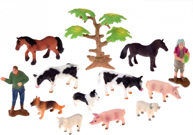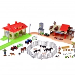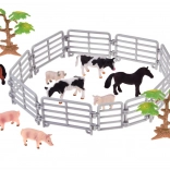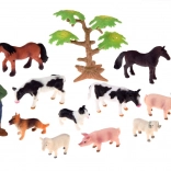 L'ensemble contient divers animaux, y compris des chevaux, des vaches, des cochons et des moutons, offrant un aperçu authentique du monde agricole.