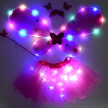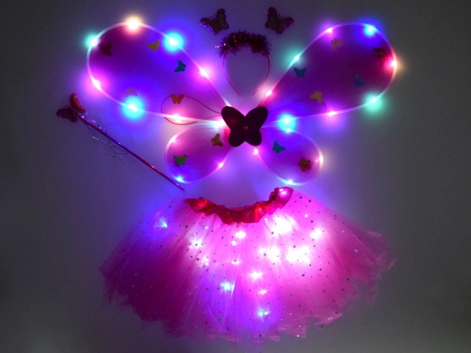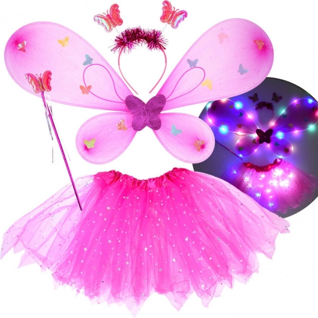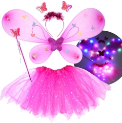 Un adorable ensemble de déguisement pour enfants composé d’un tutu rose, d’ailes de papillon, d’un serre-tête et d’une baguette magique. Grâce aux LED intégrées dans la jupe et les ailes, il crée un effet féerique qui illumine chaque carnaval, fête ou jeu à la maison. L’ajustement élastique confortable et le tulle léger orné de petites étoiles scintillantes garantissent confort et imagination sans limites.