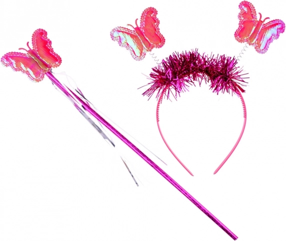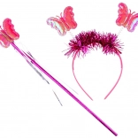 Des ailes de papillon colorées, un serre-tête et une baguette complètent un look de fée parfait pour le carnaval ou les jeux à la maison.