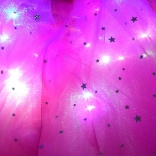Ce délicat costume de fée rose est fait pour les petites amatrices de contes et de fantaisie. Il comprend un tutu vaporeux avec de petites étoiles scintillantes et une taille élastique confortable, des ailes de papillon légères décorées de petits papillons colorés, un serre-tête et une baguette magique. Les LED dans la jupe et les ailes diffusent une douce lumière qui apporte une atmosphère magique à l’ensemble du déguisement.