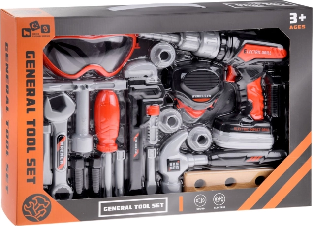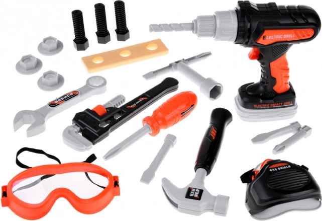 - Équipement complet: L'ensemble comprend une perceuse, un marteau, des clés et des lunettes de protection, permettant divers types de jeux de réparation.