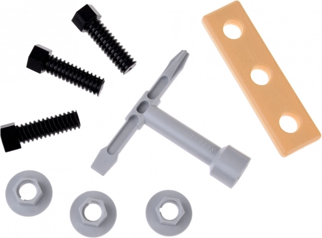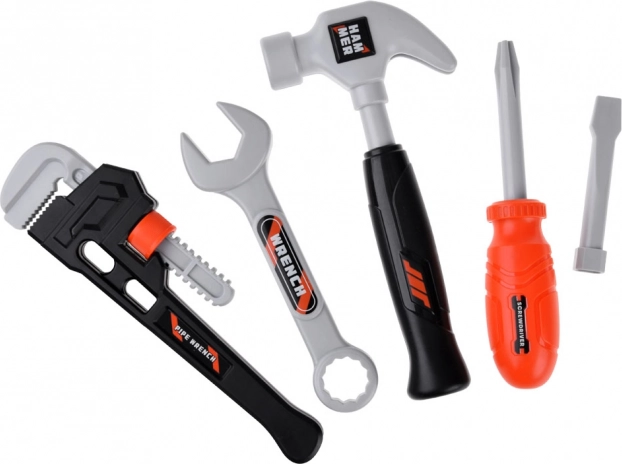 Pour tout petit bricoleur désirant tester ses compétences en réparation, cette grande trousse d'outils est un choix parfait. L'ensemble est composé d'outils en plastique dans trois combinaisons de couleurs : noir, orange et gris, et offre des formes réalistes qui stimulent le jeu créatif et imaginatif. Les réparations quotidiennes deviennent amusantes, qu'il s'agisse de fixer la roue d'une petite voiture ou de resserrer la vis d'une maison de poupée.