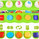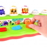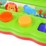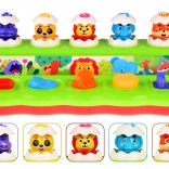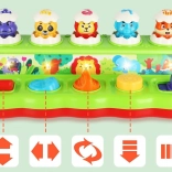 Chaque animal réagit à un type d’action différent – déplacement d’un levier, pression d’un bouton, rotation d’un bouton ou bascule d’un commutateur. Les enfants apprennent ainsi à distinguer les couleurs et les formes, entraînent la coordination œil–main et peuvent s’exercer au comptage avec les éléments numérotés.