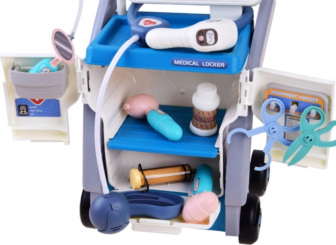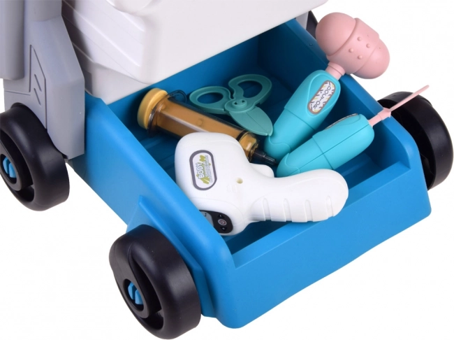 Grâce aux roulettes, à la poignée et à l’armoire fermable avec tiroir coulissant, les petits médecins ont tout à portée de main et les outils toujours bien rangés.