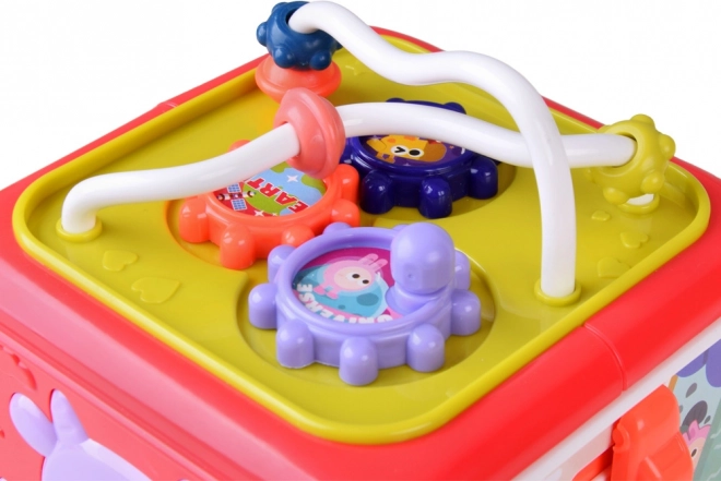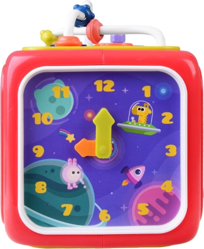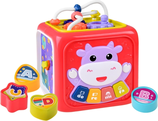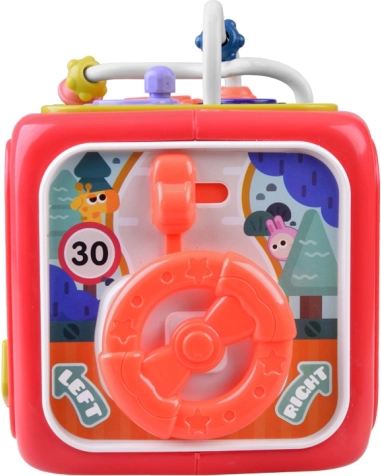 Ce cube éducatif multifonction a été conçu pour grandir avec votre enfant. Chaque face propose une activité différente : petit piano lumineux avec chansons et sons d’animaux, éléments mécaniques pour les doigts, volant pour les petits conducteurs, horloge pour apprendre l’heure et trieur pour reconnaître formes et couleurs. Grâce à ses dimensions compactes, il est idéal pour les promenades et les voyages.