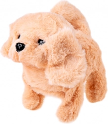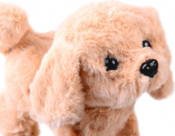 Le chiot beige tout doux marche, aboie, remue la queue et, lorsqu’on le caresse, produit des sons de chiot – comme un véritable petit chien.