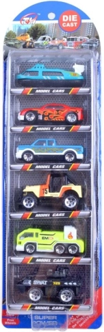- Contenu de l’emballage : 6 voitures métalliques (modèles et couleurs variés)