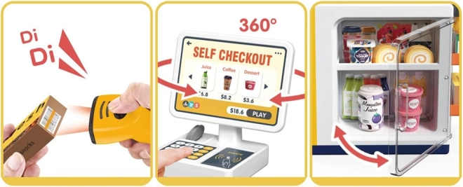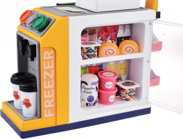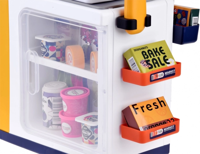 La partie réfrigérée fermable accueille des yaourts, des jus, des desserts et d’autres aliments factices. Idéal pour jouer au café, au magasin et à la caisse en libre-service.