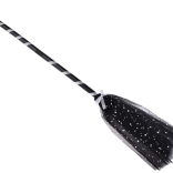 Balai pliable au motif spiralé noir et blanc, avec franges décoratives pour une touche ludique.