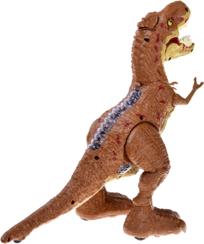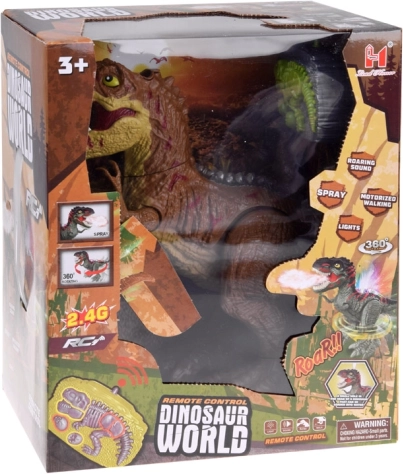 Le modèle se distingue par des détails réalistes, avec des éléments lumineux sur le dos et une gueule éclairée en rouge. La boîte contient tout le nécessaire : télécommande RC, bracelet capteur, batterie 3,7 V 500 mAh, chargeur USB, tournevis et pipette pour remplir d’eau afin de produire l’effet vapeur.