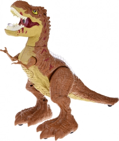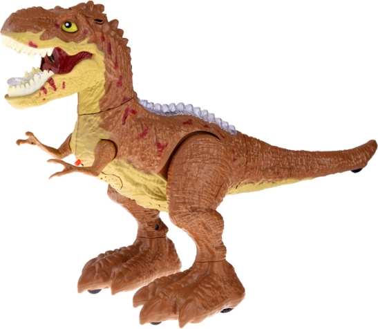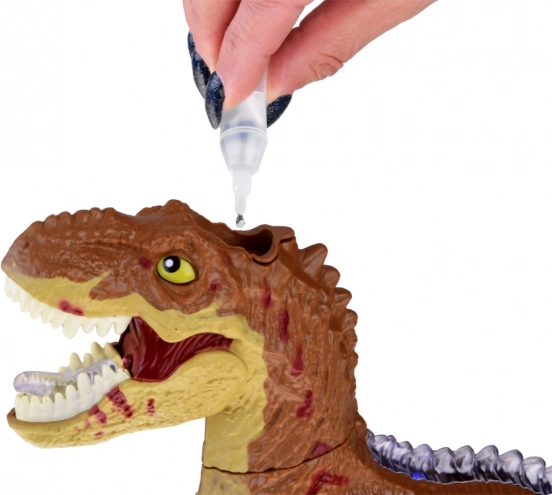 Après avoir rempli le réservoir d’eau, le T‑Rex émet une vapeur rétro‑éclairée par la gueule qui, avec le rugissement, crée l’effet saisissant d’un véritable prédateur.
