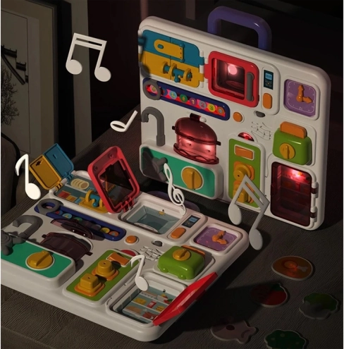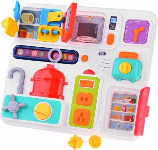 Le tableau de cuisine interactif assure des heures de divertissement pour vos petits. Fabriqué en plastique de qualité, il contient de nombreux éléments qui stimulent l'activité intellectuelle. Accompagné de sons mélodieux et de lumières clignotantes, chaque jeu est unique.