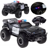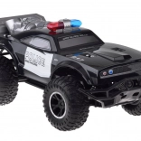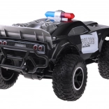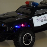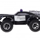 Ce grand monster truck est fabriqué en plastique flexible, ce qui lui confère légèreté. Les grandes roues en caoutchouc avec amortisseurs suspendus assurent une excellente adhérence au terrain et une manipulation facile dans les virages. Le véhicule est équipé d'une convergence de roues réglable, ce qui améliore la conduite. La véritable attraction est son éclairage clignotant rouge-bleu, qui imite les signaux de la police et brille dans le noir, créant une expérience réaliste.