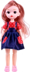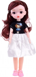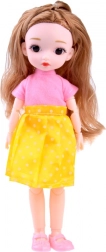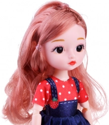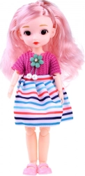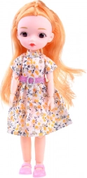 La poupée est habillée d'une robe colorée et de chaussures roses, faciles à enlever. Son visage délicat est encadré de cheveux longs et brillants, qui peuvent être coiffés et stylisés de différentes manières. Grâce aux joints articulés, la poupée peut être positionnée dans différentes poses, comme assise ou les bras pliés.