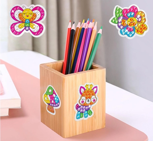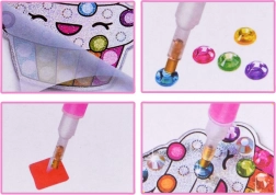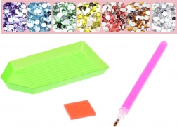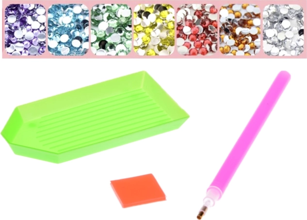 Cet ensemble permet de créer 12 magnifiques autocollants avec des petits diamants brillants. Il suffit de choisir la bonne couleur et d'utiliser un applicateur spécial pour placer les pièces sur le gabarit adhésif. Le résultat est une décoration belle et colorée.